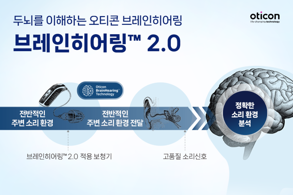 오티콘(Oticon)의 브레인히어링(BrainHearing)™ 2.0은 이 두뇌 청각 시스템의 작동 원리를 보청기 기술에 반영했다. 특히 최신 ‘시리우스(Sirius) 플랫폼’이 적용된 오픈형 ‘인텐트(Intent)’와 귓속형 ‘오운 SI(Own SI)’ 모델은 이러한 두뇌 기반 청취 기술을 구현해, 다양한 환경에서도 선명한 대화와 편안한 청취 경험을 제공한다.
