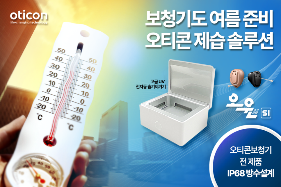 덴마크 디만트코리아의 프리미엄 브랜드 오티콘 보청기는 사용자들의 이러한 불안을 줄이기 위해 여름철 보청기 관리에 필요한 두 가지 핵심 솔루션을 제안했다. 바로 UV 살균기능을 갖춘 전용 제습기, 그리고 IP68 방수 설계로 여름철 환경에 강한 귓속형 보청기 ‘오운SI(Own SI)’이다.